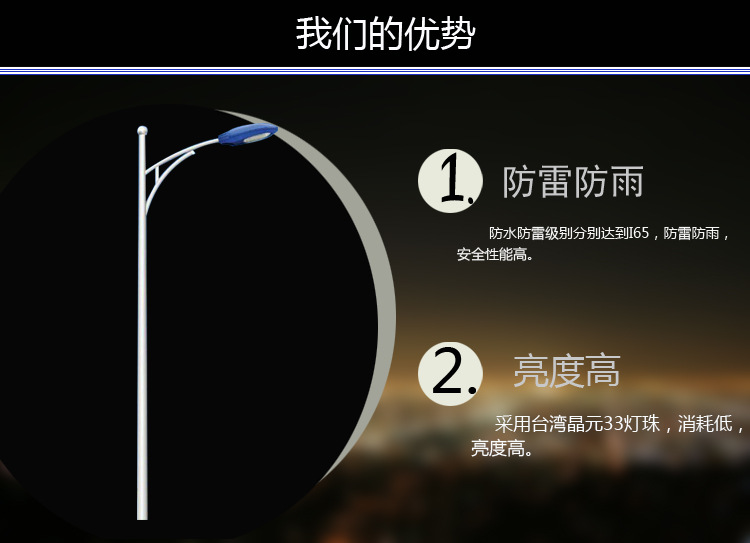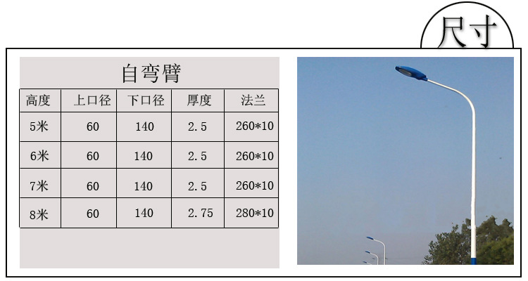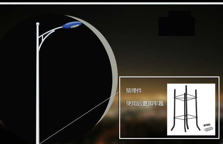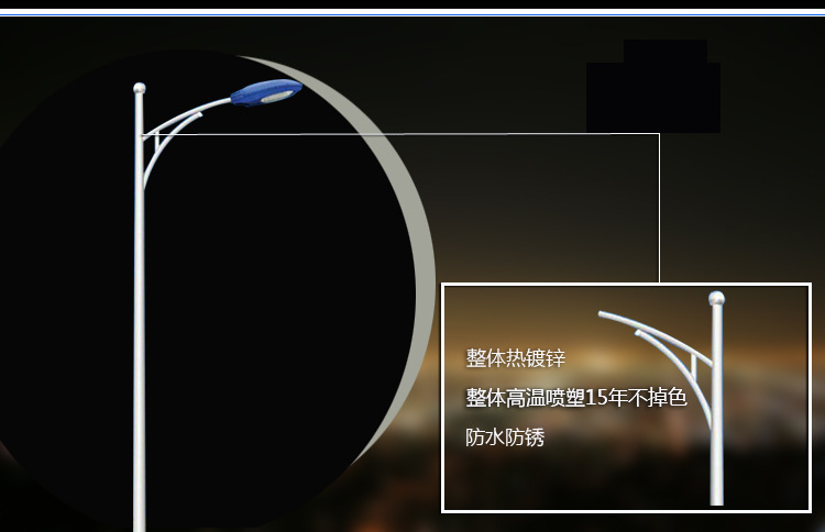 主体材料:灯杆为全钢结构、整体热镀锌/喷塑处理