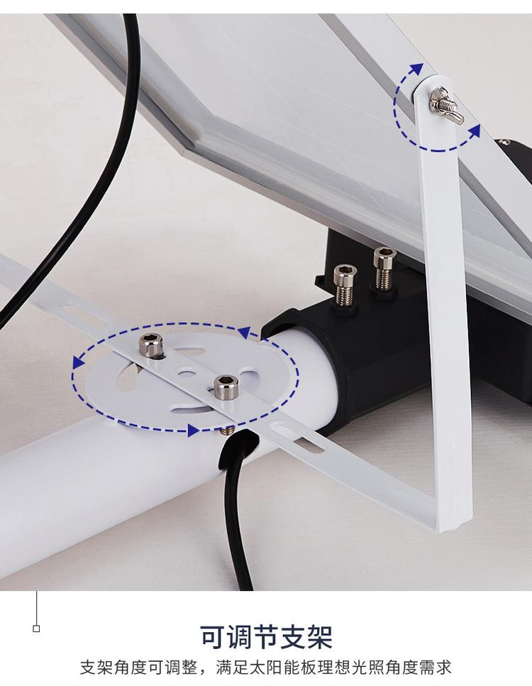 4、当太阳能电池组件横放时,接线盒应向距灯杆组件近的方向靠拢。部分新农村太阳能LED路灯在连接上灯杆与太阳能电池组件角钢固定框时需穿护套线,穿线时要注意保护护套线不被损坏。