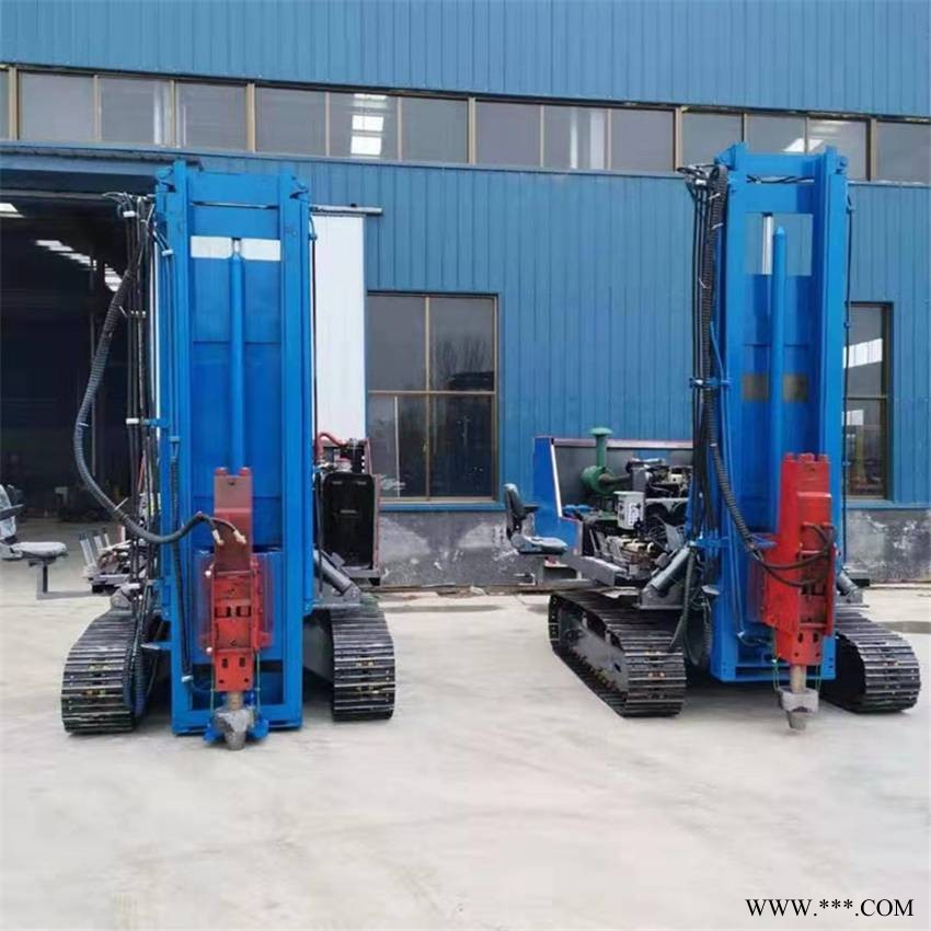 履带式光伏打桩机用8吨钢制履带地盘,带宽400,动力为玉柴增压发动机,三联泵,型液压锤头,360度无限旋转,伸缩式液压桁架提升高度达到6.2米,双液压打桩,可调节高低速冲击。大大了打桩效率。