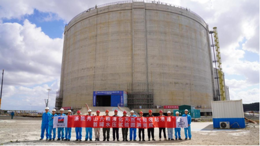 浙能舟山六横液化天然气接收站项目首罐水压试验圆满完成。